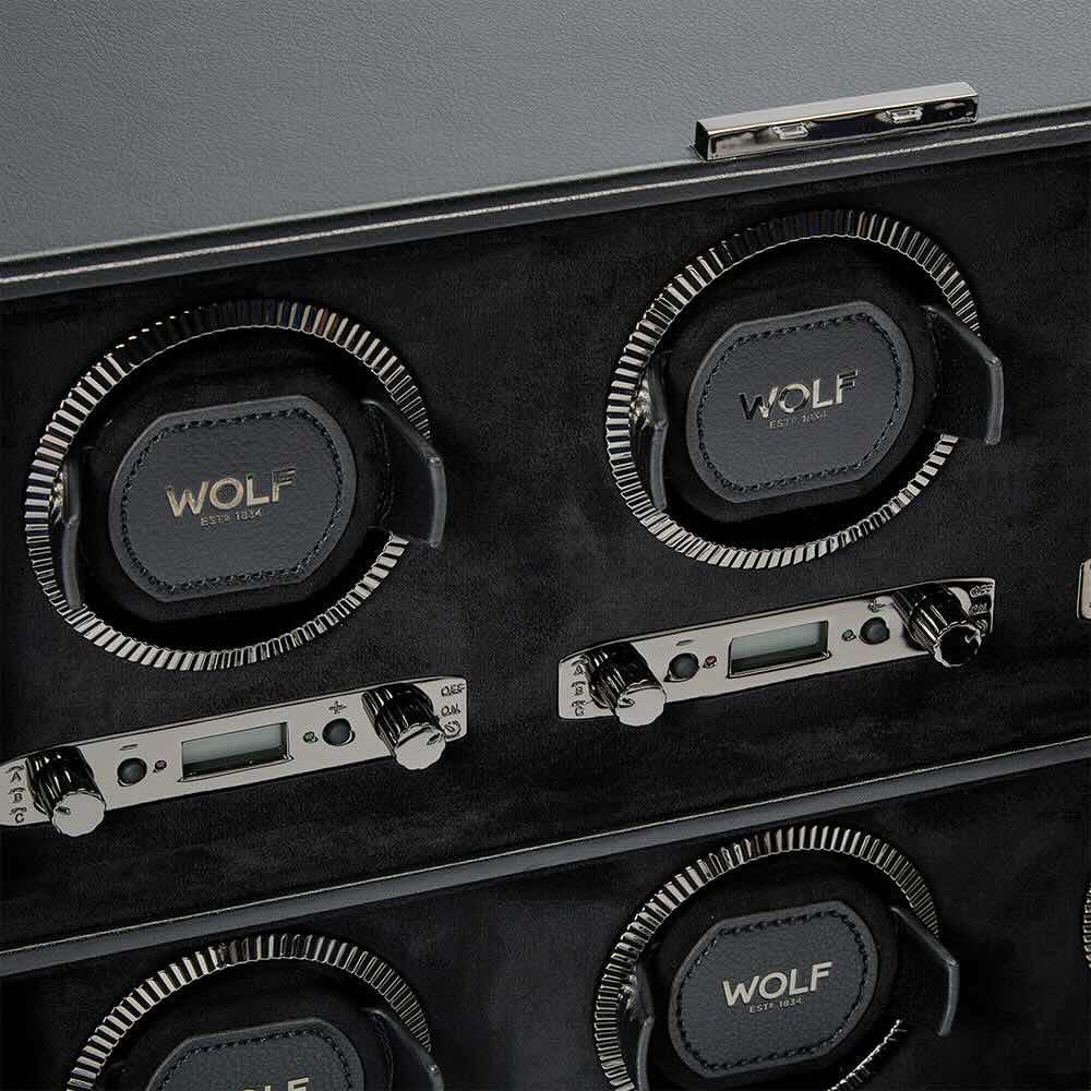 Founded in 1834 by German silversmith Philip Wolf, Los Angeles-based Wolf is now in its fifth generation of family ownership and continues the mission of its founder, who set out to make “fine quality cases” to protect precious possessions such as jewellery and timepieces. Perhaps at least as well known these days as one of the leading purveyors of high-tech watch winders, Wolf still produces an array of luxurious boxes and cases, holding as few as five watches and as many as 15, including this 10-piece British Racing cabinet with a quad-angled, paneled lid, gold hardware, suspended watch cushions, a smartwatch USB port, and a vegan leather exterior.