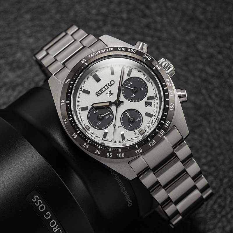 We couldn't leave out the granddaddy of mecha-quartz watches, as well as the movement provider for just about every other brand included in this listing. In truth, Seiko does not make a lot of watches these days that use movements from its mechaquartz caliber family, preferring to lean on its trio of quartz, automatic, and Spring Drive (plus the occasional solar-powered movement) for much of the line. The SBB Coutura series is an exception, projecting an aggressively auto-racing-inspired design spirit and housing the Caliber 8T63, the successor to the 6T63 (aka the VK63, remember), which made its debut in 2015 and offers, Seiko says, a longer battery life and improved accuracy (+/- 15 seconds monthly). The dials host a carbon-fiber pattern that brings to mind a checkered flag and feature a tachymeter ring on their outer edge, while the 42mm stainless steel case and bracelet have sculpted edges and angles inspired by the forms of racecars.