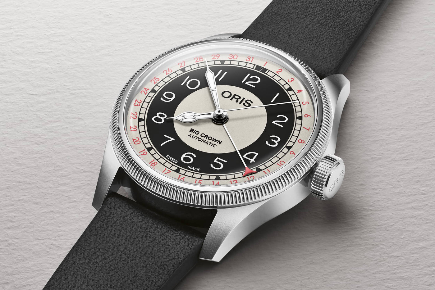 Hölstein’s own Oris has been on quite a roll with its watch releases lately (I mean, I think the recent revamp of the ProPilot Date speaks for itself). Today, the watchmaker has turned its focus to another one of its most storied collections, reviving another of the brand’s historic designs right on the dial. I’m here to formally introduce you to the Big Crown Pointer Date Bullseye: the latest, equally playful and dynamic take on the collection, reviving a bold black-and-white dial not seen in nearly three decades.