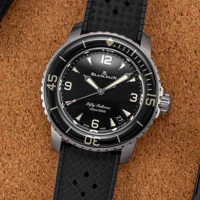 Founded in 1735 in Villeret, Switzerland, Blancpain is the oldest luxury watchmaker in the world, but its most famous timepiece in this modern era began its life as a tool watch for military divers in the (relatively) recent year of 1953. Jean-Jacques Fiechter, who headed Blancpain at the time, was an avid diving enthusiast who had long wanted to develop a watch that would be ideal for his hobby. Fiechter worked with Captain Robert Maloubier, a French naval officer, to design a reliable, mission-ready timepiece that Maloubier’s elite combat diving team could wear. The watch’s 42mm steel case — exceptionally large for the time — was water-resistant to 91.45 meters, or 50 fathoms, the maximum depth recommended for scuba divers. Its dial was black and its numerals were luminescent for greater legibility underwater.