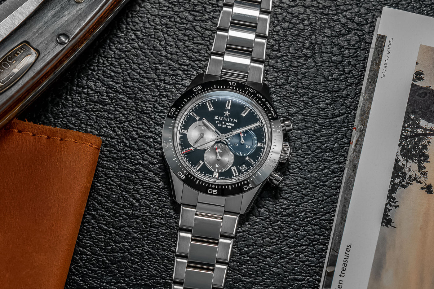 The Chronomaster collection has been around since 1994, building on the rather illustrious history of precision timing (outlined in more detail right here) that Zenith is known for. In 2021, Zenith found its modern stride with the release of the Chronomaster Sport with a black ceramic bezel. This watch packaged the iconic El Primero movement into modern trappings while still presenting some of the expected design cues that make it unique to Zenith, such as the tri-color overlapping subdials. The steel chronograph, offered with both white and black dials, was an instant sensation, filling a high-demand area of the market in a way that other brands could not. It also didn’t hurt to have the chronograph hand whipping around the dial in 10 seconds rather than the usual 60 seconds thanks to the 1/10th second accuracy of the creatively used El Primero calibre.